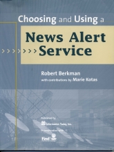 Sources Select ResourcesBerkman is not identified in this book, but he appears to be the same Robert Berkman who has written information retrieval and reference books for the past twenty-five years or so. The date of publication here is actually August 2004, so it is really current. Overall, there are 81 pages of text; the balance is comparative tables. News alerts are E-mail messages that keep you current on any themes you tell such a service to do for you. You'll want to keep ahead of the competition, so time is of the essence. His definition: news alerts services scan and index text for subscriber's keywords, and automatically alert subscribers to those news items. The idea is not new: twenty years ago there used to be FAX alert services (in fact, Sources was poised to get involved at one point).