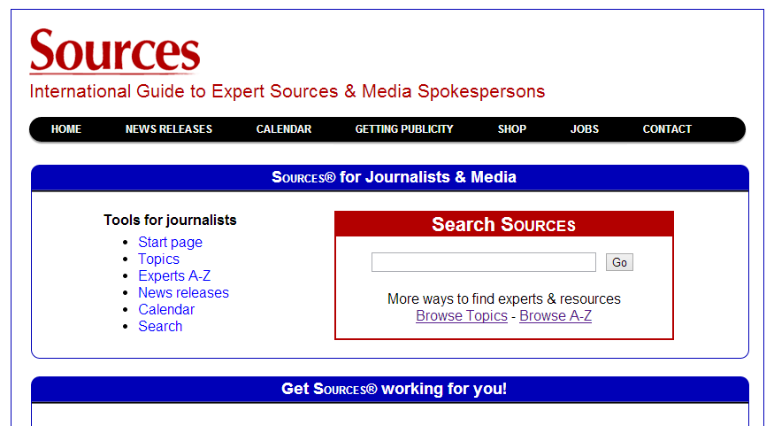 browse the Subject Index or use the Search. For help in reaching the media and the public with your story and your views, use Sources’ media relations tools.To become a member, use this form.